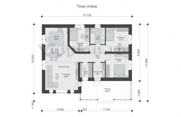 | Размеры дома: | 11.68м×13.72м |