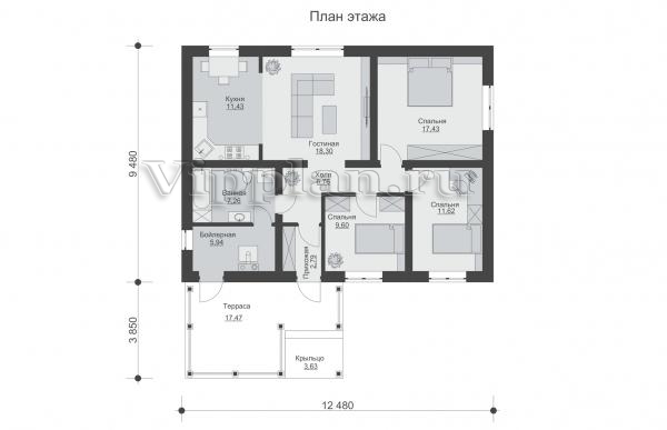 | Размеры дома: | 13.33м×12.48м |