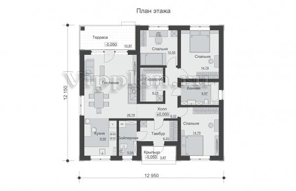 | Размеры дома: | 12.15м×12.95м |